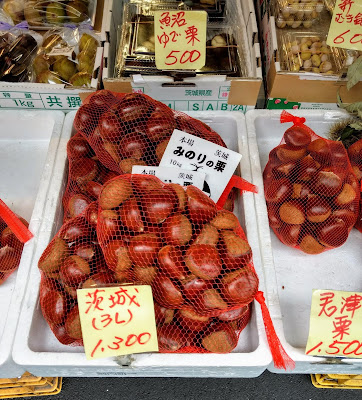 A zöldségeket is megcsodáltam, s itt láttam viszont azt a fura selymes falevelet, amit egyik első kajálásunkkor a salátára raktak. Rengeteg ismeretlen volt közöttük, ezeket fényképeztem. Vettem wasabis sót és wasabit, tubusban, amire a bácsi büszkén magyarázta, hogy melyik vidékről való. Úgy vettem észre, minden terület nagyon büszke a saját terményeire, s azt hirdetik is. Sőt, mivel szokás kisebb ajándékot vinni a főnökünknek, felettesünknek, ha pl. valamilyen okból vidékre kell utaznunk, ilyenkor az adott vidékre jellemző édességet vagy dolgot kell megvennünk. Ha ott elfelejtenénk, ezt megtehetjük a legfőbb vonat/metróállomásokon Tokyo-ban, mert ott található olyan bolt, ahol minden megyéből tartanak valamilyen jellegzetes terméket.